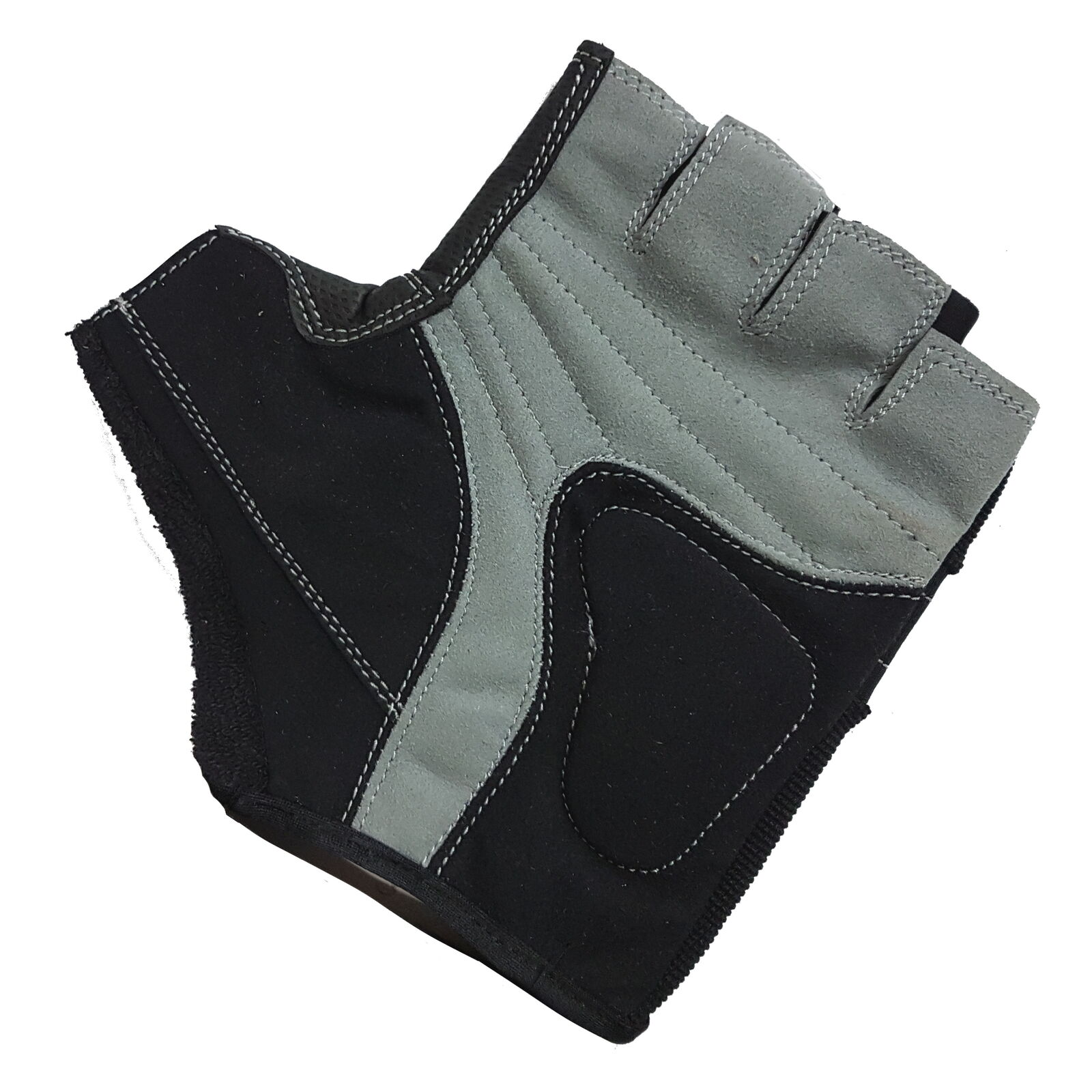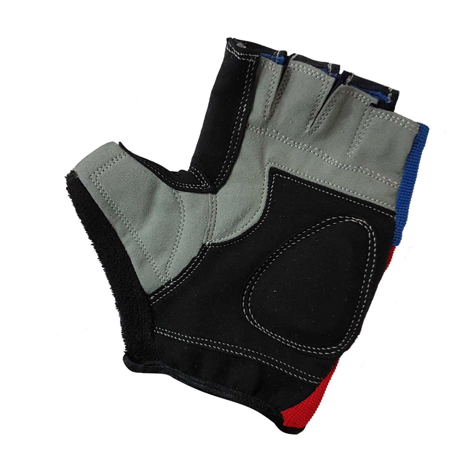 Half finger design for maximum fingertip control with 'hook and loop' closure..