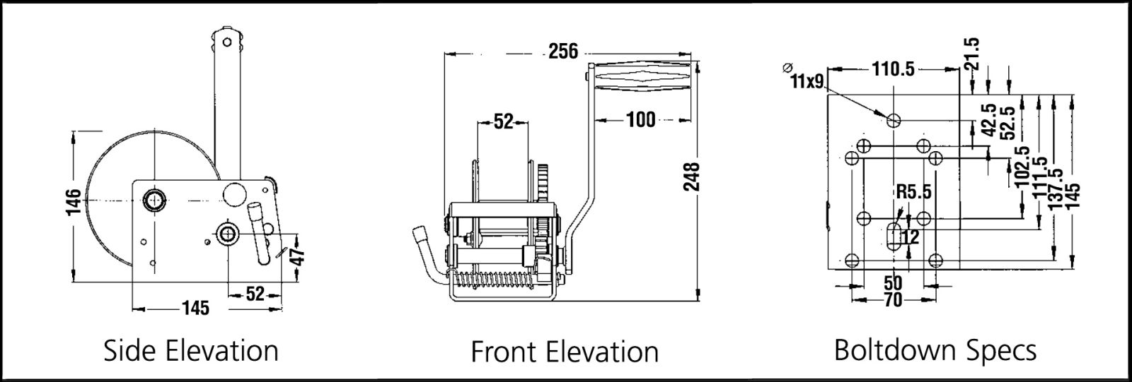 Link to larger view: Elevation And Boltdown / Winch Selection Guide