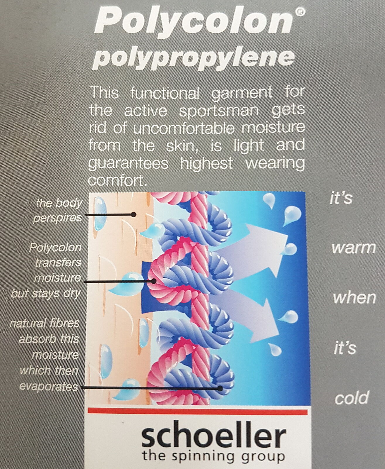 POLYCOLON® is the lightest functional fibre in the world. It is approximately 40% lighter than cotton and around 35% lighter than polyester.