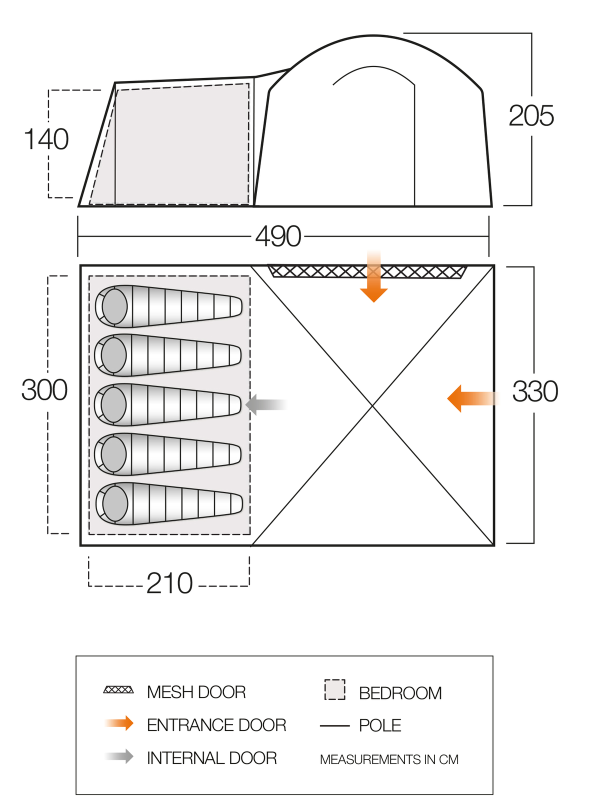 - Polyethylene Groundsheet - Tough, durable and waterproof groundsheet to prevent any water ingress which can be easily cleaned if dirty