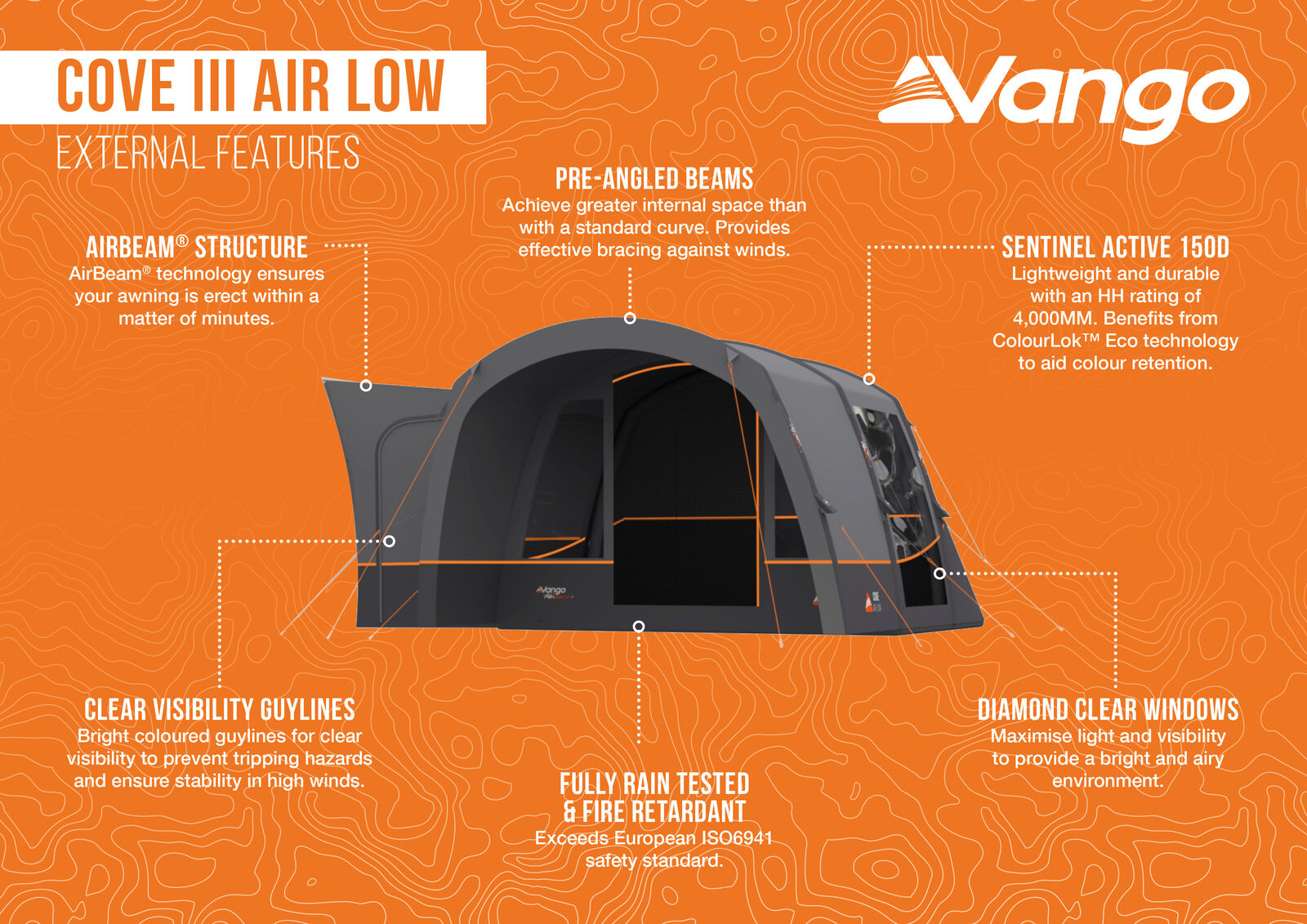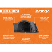 Vango Cove III Air Low is the ideal size for ample storage room, socialising or creating an additional sleeping area.