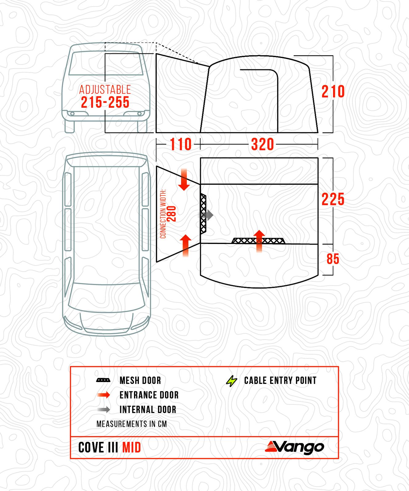 Featuring a front-facing layout, the Cove is positioned the same way as your campervan, ensuring you are always facing the view and giving you added privacy from your campsite neighbours. The ideal addition to your campervan for wherever your next adventure takes you.
