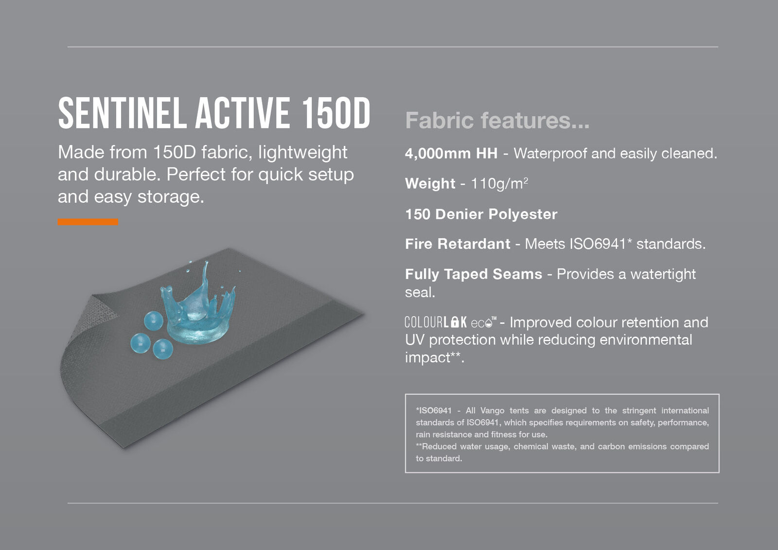 - Lightweight, durable and waterproof. 150D fabric with an HH rating of 4,000MM. Benefits from ColourLok Eco technology to aid colour retention.