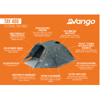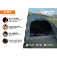 The Tay 400 4-man tent is a dome style tent which adds space within the tent and benefits from a small pack size.