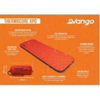 Thermocore XPD is Vango's thickest, warmest trekking mat offering 4-season performance and designed for users seeking the ultimate comfort in any condition. The unique vertical walled design produces a larger sleeping area than a traditional mat construction whilst also maximising the heat retaining properties.