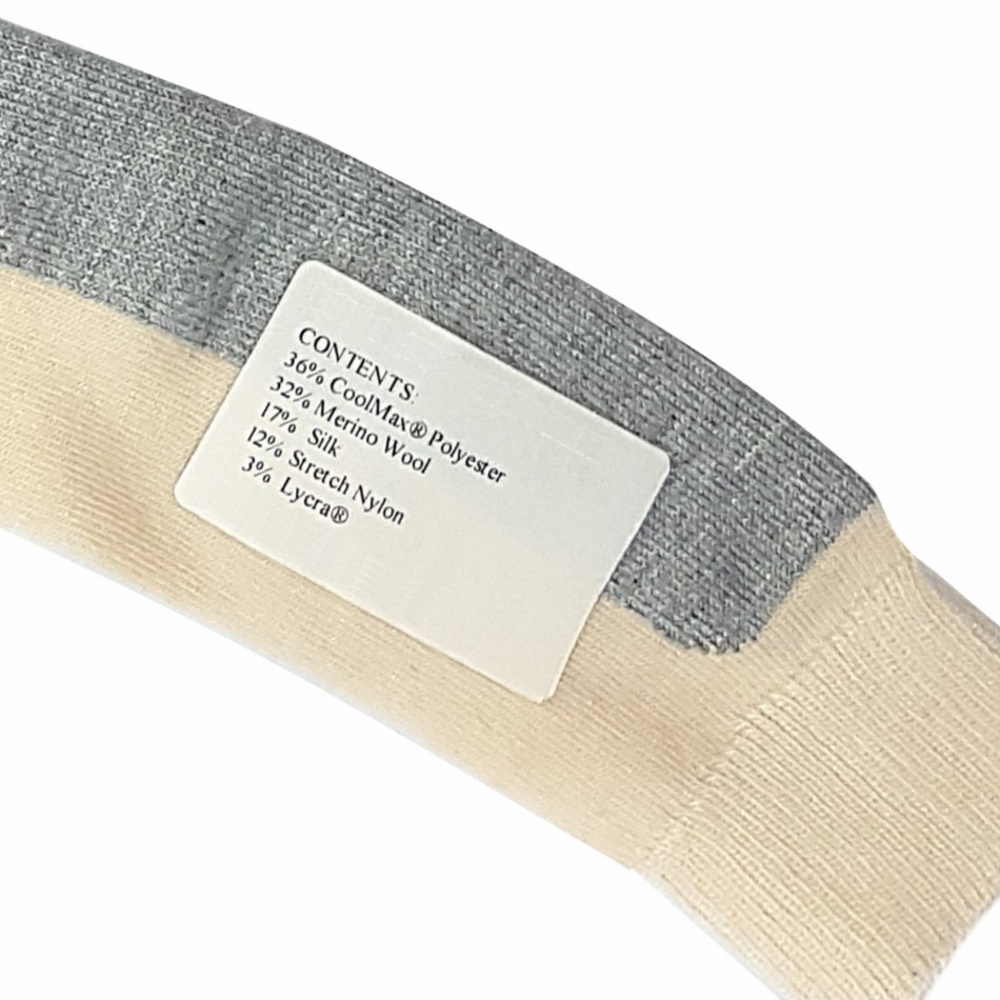 Content:36% CoolMax Polyester, 32% Merino Wool, 17% Silk, 12% Stretch Nylon, 3% Lycra